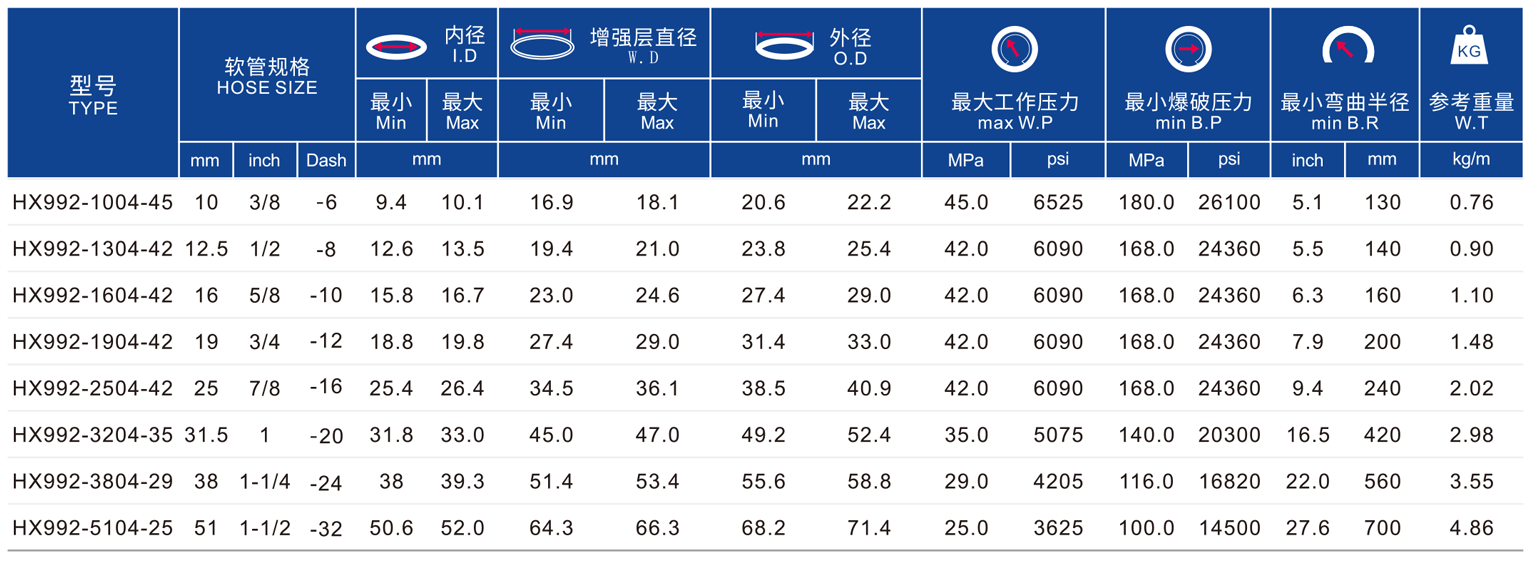 增强层:四层钢丝缠绕(992),脉冲≧100万次